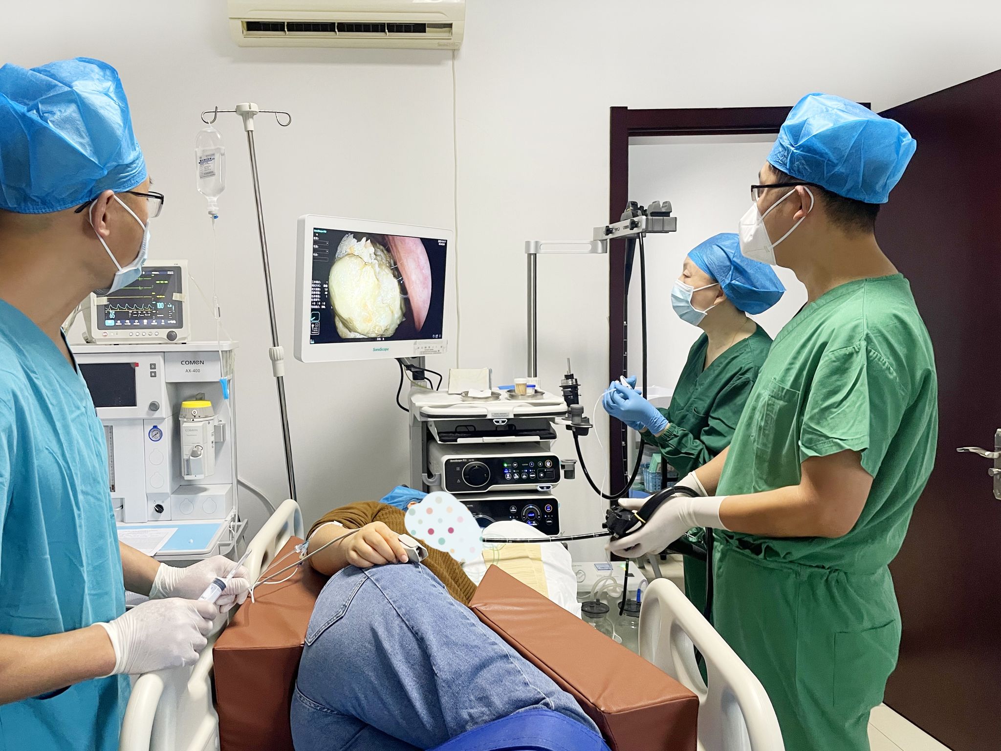 我院内镜室拥有全高清电子胃镜、全高清电子结肠镜、全高清电子支气管镜,呼吸麻醉机、心电监护仪、内窥镜专用清洗消毒流水线、空气消毒机、内镜送水泵、二氧化碳气泵等。拥有专业的经验丰富的胃肠镜专家团队、支气管镜专家团队、麻醉专家团队、专科护士。内镜室服务质量优秀,医德医风良好,全体人员本着“以病人为中心”的服务宗旨,实施优质护理服务,温馨陪检,实施一站式诊疗。