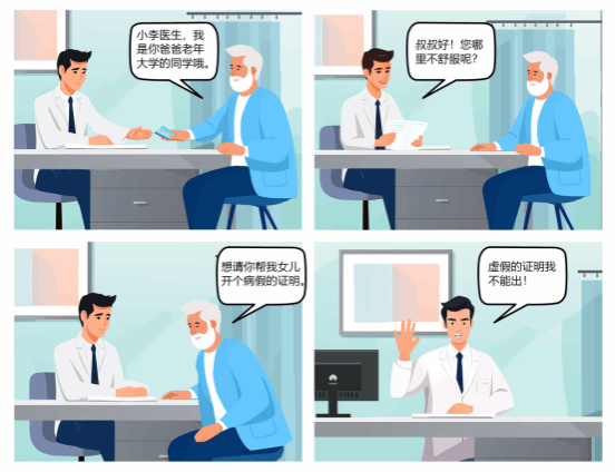 出具虚假的医学证明,违规违纪、害人害己,情节严重的甚至构成犯罪。医务人员务必秉承科学、客观、严谨的态度出具各类医学证明,对患者负责、对自己负责、对医院负责。