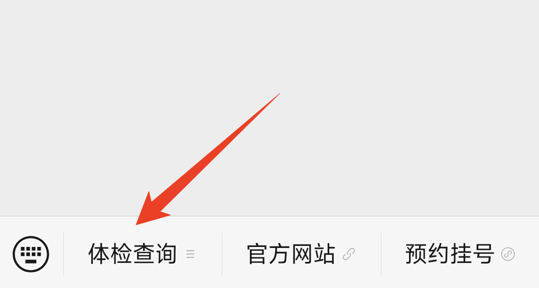 2.进入查询通道:进入公众号主页面后,点击下方菜单栏专门设置的“体检查询”按钮。
