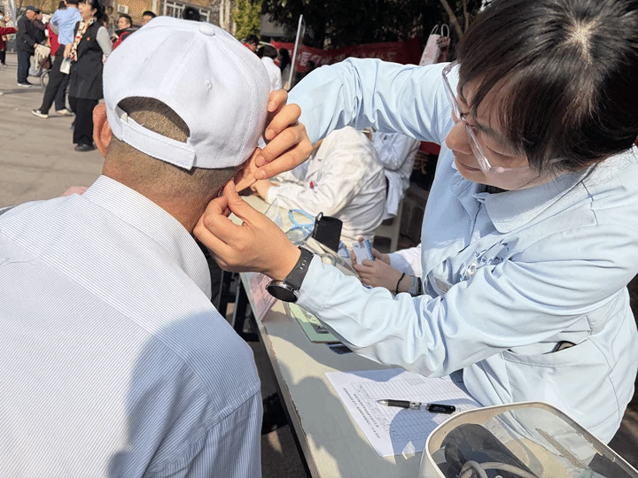 活动现场,来自多学科的党员志愿者和医护人员热情接待前来咨询的居民,免费为大家测量血压,细致解答各类健康问题,并针对常见病、多发病给予专业指导。康复科医生结合中医特色疗法,为有需要的群众现场贴敷穴位压力刺激贴,帮助缓解肩颈腰腿不适等症状,贴心的服务赢得了现场群众的一致好评。