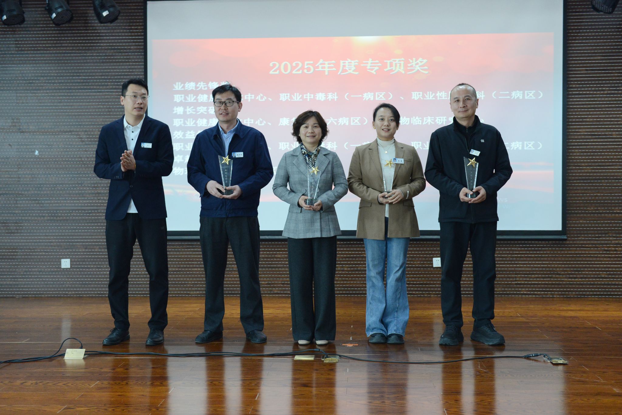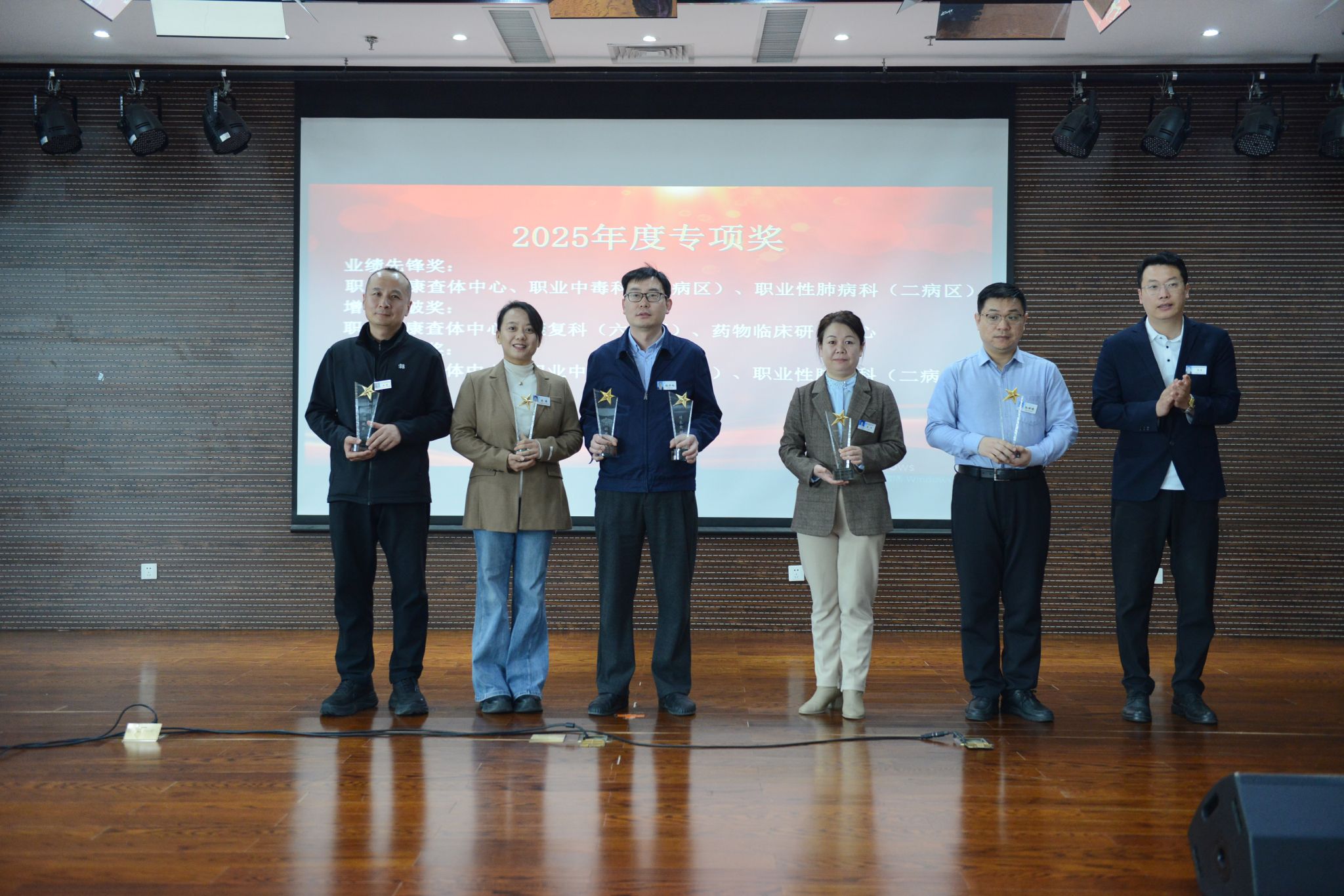会上,党委委员、纪委书记王玉鹏传达了山东第一医科大学(山东省医学科学院)2026年工作会议精神,号召全院干部职工锚定目标、凝心聚智,以更加昂扬的斗志和务实的作风,奋力开创2026年各项工作新局面,以实干实绩推动“十五五”开好局、起好步。党委委员、附属职业病医院院长宁康,党委委员、工会主席潘志峰分别宣读了《关于表彰二〇二五年度专项奖的决定》和《关于表彰二〇二五年度先进科室和先进工作者的决定》。会议对2025年度先进科室、先进工作者以及专项奖获奖科室和个人进行表彰。