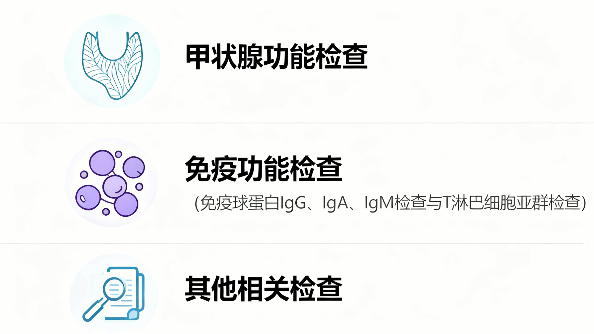 Ø 免疫功能检查:查免疫球蛋白(IgG、IgA、IgM)和 T 淋巴细胞亚群,看看身体的 “防御系统” 是否被辐射削弱,避免抵抗力下降。
