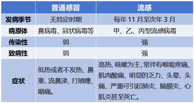 但是流感是“全身大侵袭”,特指甲、乙、丙三型流感病毒感染,症状来得猛,会突发39-40℃高烧、畏寒、头痛、全身肌肉酸痛、极度乏力,还可能引发肺炎、心肌炎等严重并发症,传染性极强,容易在秋冬季节大规模流行。2009年全球肆虐的H1N1和2013年臭名昭著的H7N9都属于甲型流感病毒。