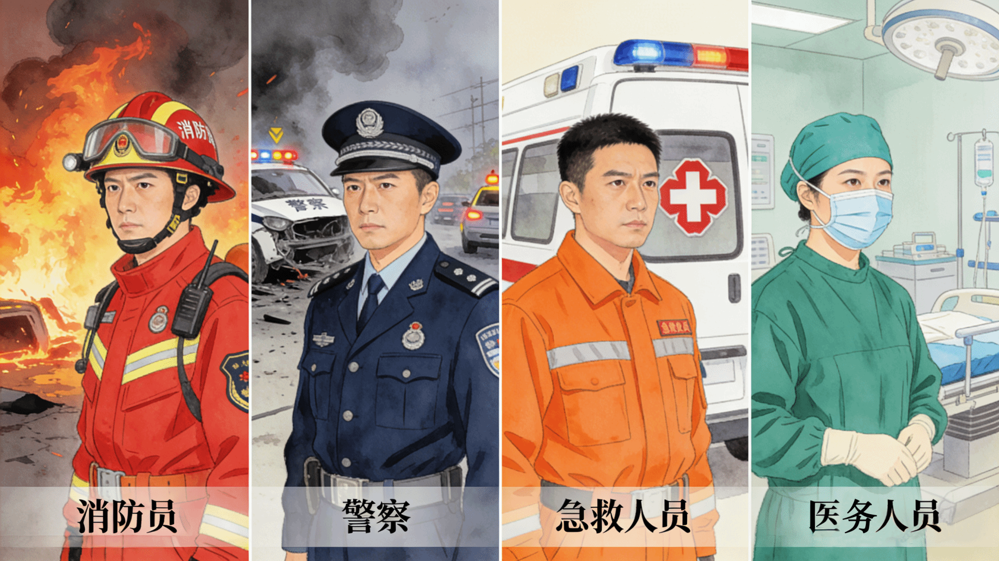 3、消防救援等应急救援人员:在各类自然灾害、事故灾难等突发事件处置(含国家救援)中,负责督导、组织和执行救援救助任务的应急救援人员,具体包括各级应急管理部门、矿山安全监察机构、地震机构的工作人员,国家综合性消防救援队伍和地方专职消防队伍人员,国家、地方安全生产和自然灾害工程应急救援队伍人员。